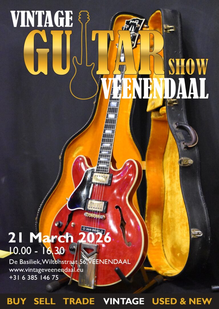 The next Vintage Veenendaal guitar fair will be taking place Saturday March 21, 2026 at ‘De Basiliek’ in Veenendaal, The Netherlands. We expect exhibitors from Belgium, Denmark, Germany, UK, France, Luxembourg, Sweden and of course The Netherlands, meaning A LOT OF GUITARS and other stuff to check out. You do not want to miss this!!